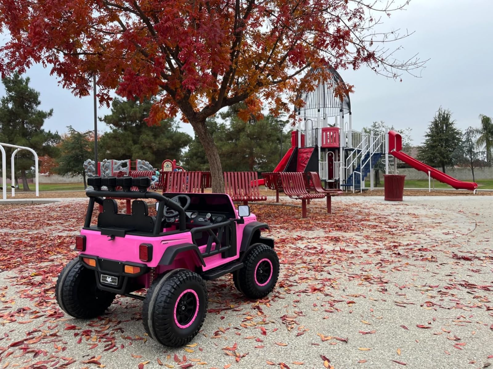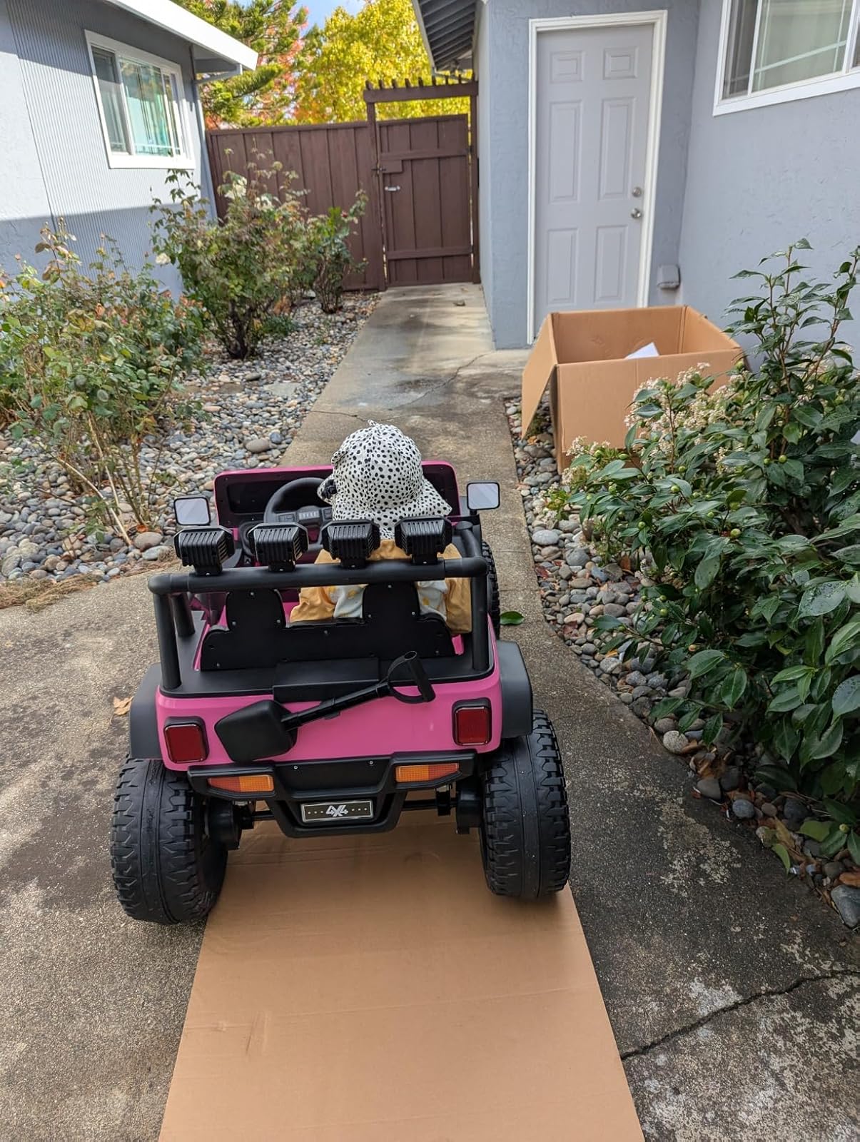 My kids love to ride in this toy jeep. It has three speeds and it steers well. It can go both forward and backward, and it has a remote control, which is useful when a parent wants to take control. Either way, the kids love the ride!